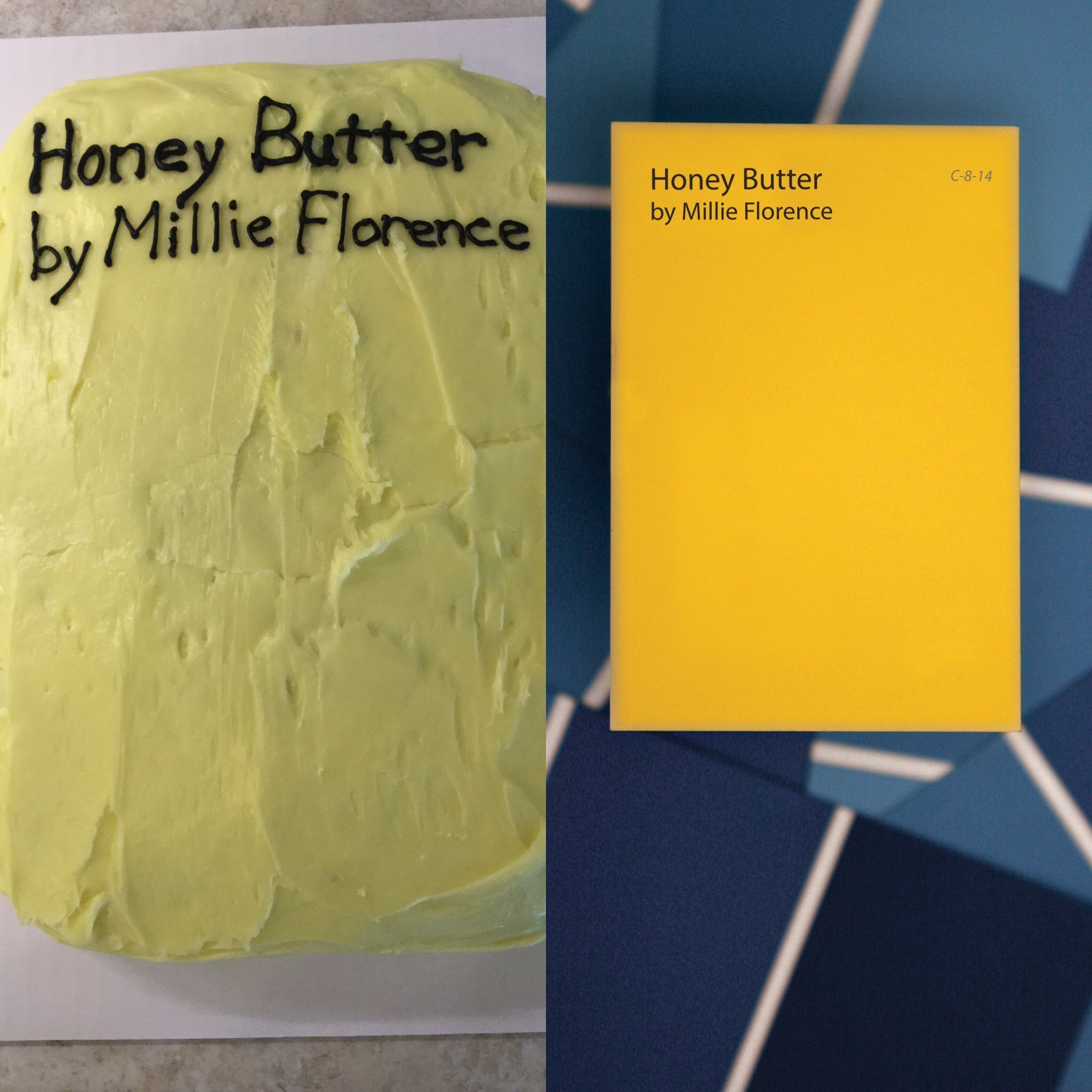 The night before the party, my mom and I made a cake that looked like the paint card on the cover of my book.